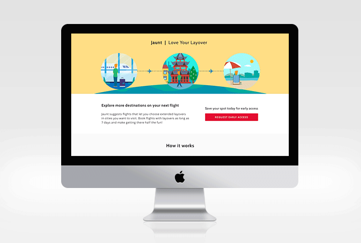 One of the most innovative features we introduced was Jaunt—a branded stopover product that allowed users to extend their layovers in major destinations at no additional cost. This idea began as a bold concept and was brought to life through a fast-paced, seven-week product sprint that I led from inception to high-fidelity execution.