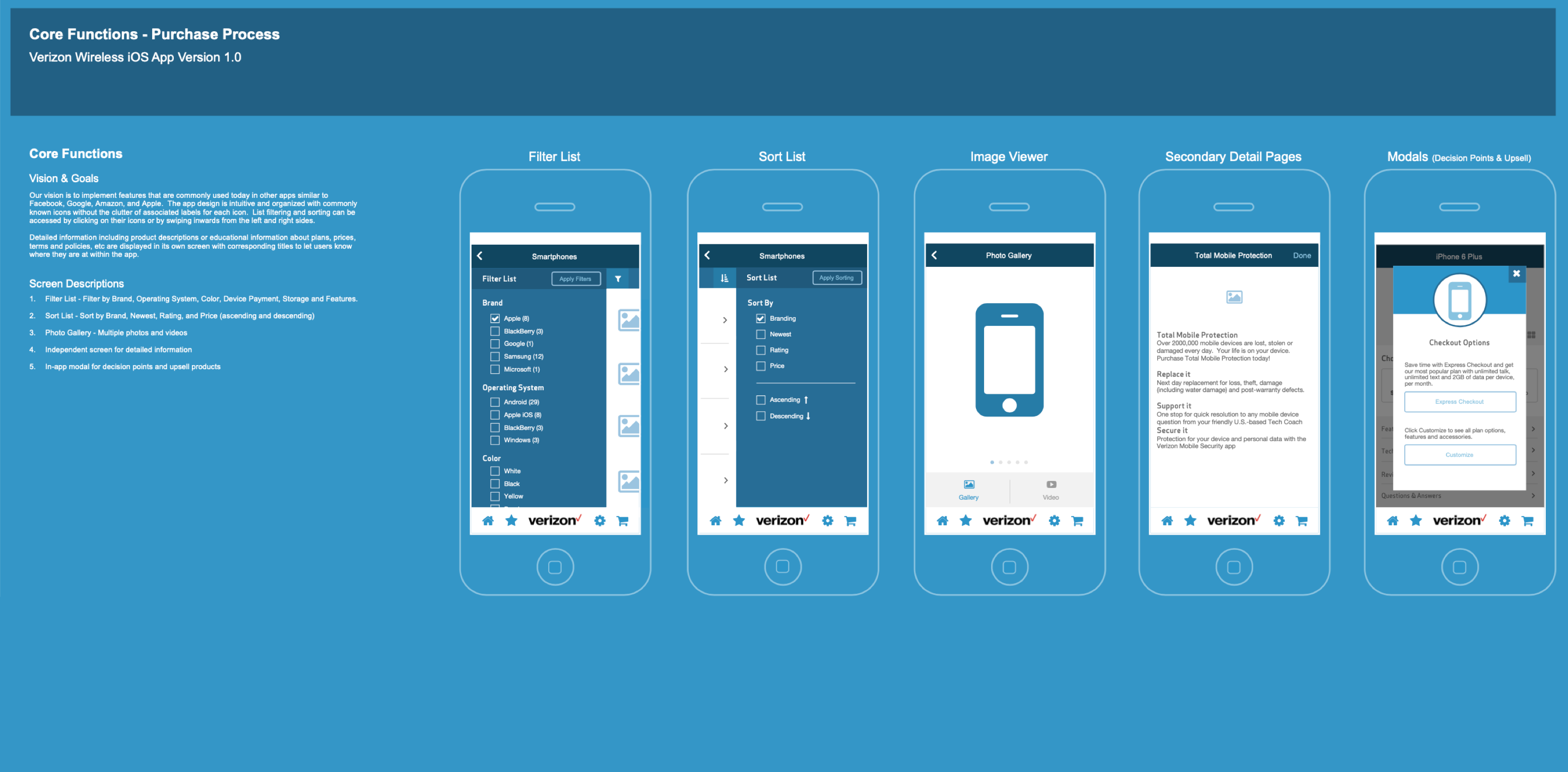 My role spanned the full UX architecture lifecycle—from foundational research and competitive analysis to wireframes, prototyping, and high-fidelity design. I had only 9 weeks to deliver a prototype to a panel of executives. The success of this project would decide if a new Verizon Wireless mobile app would launch along with the Verizon rebranding.